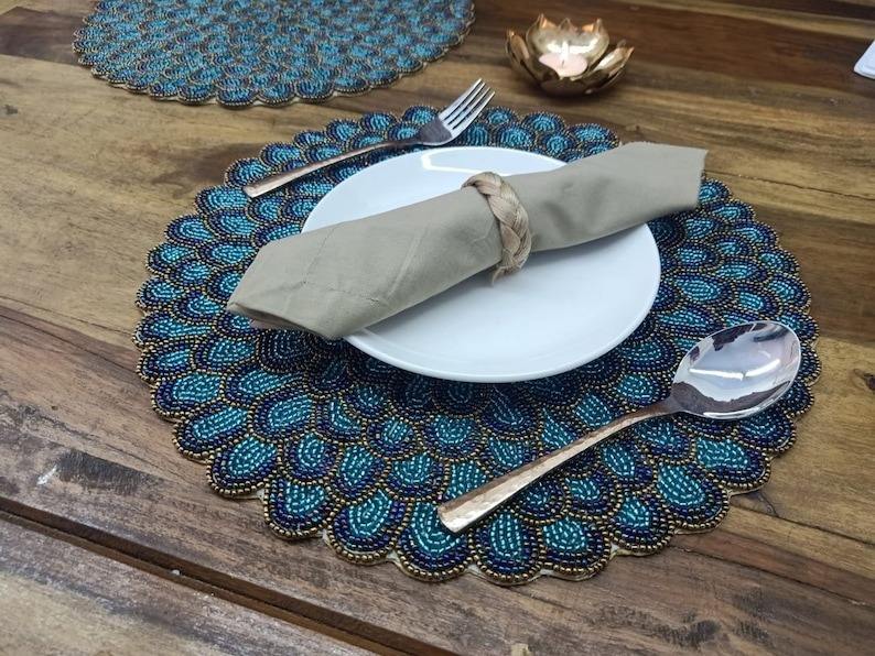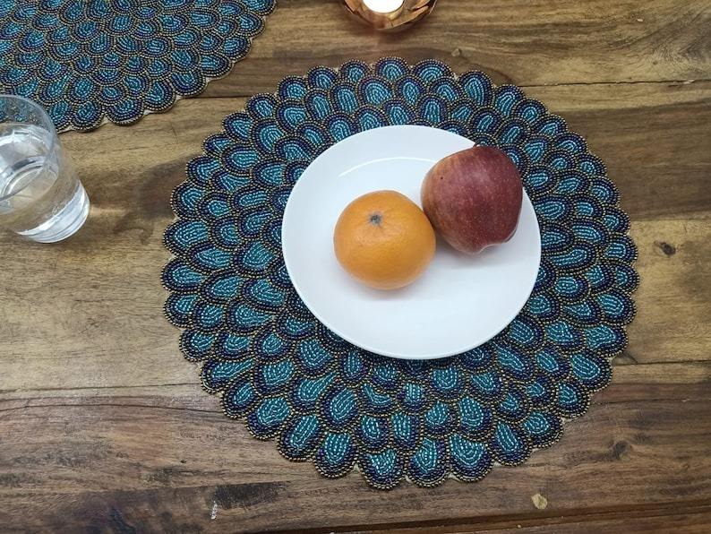 Set of Christmas handmade beaded placemat tablemat inch red and gold