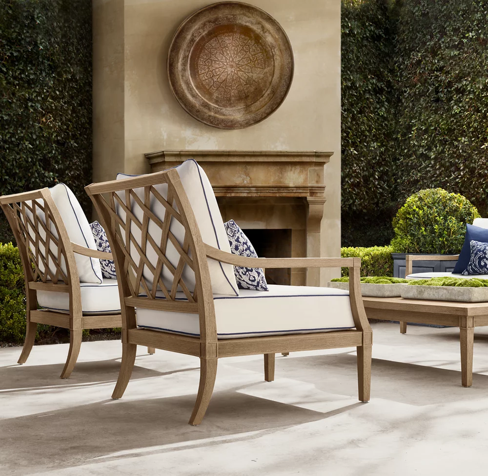 Set of Elegant Outdoor Armchairs with Lattice Backs
