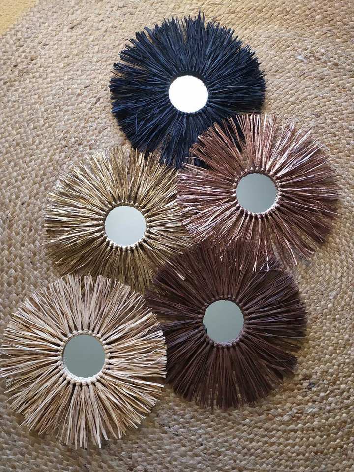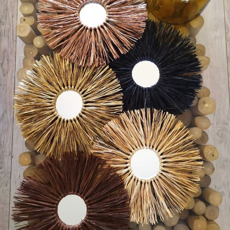Raffia Mirrors Set Boho Rattan Wall Mirrors Natural Woven Round Mirror Decor