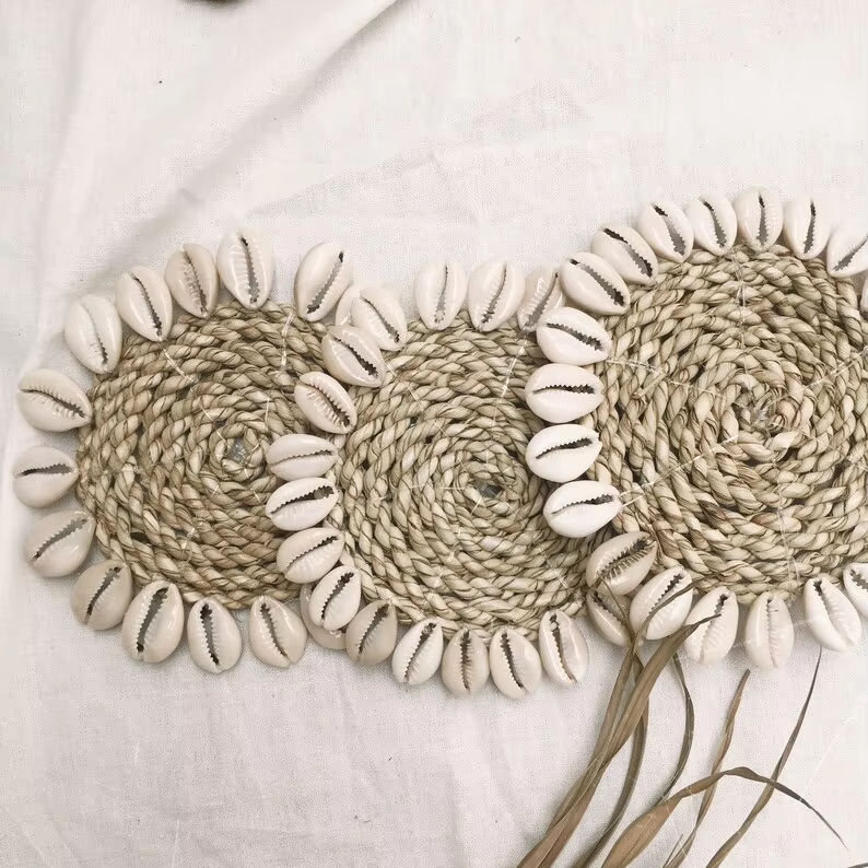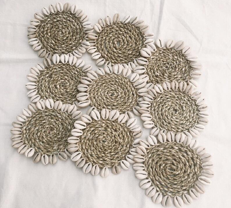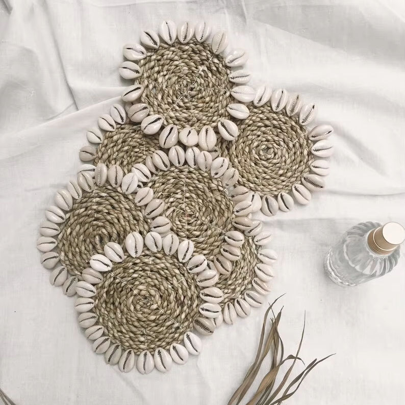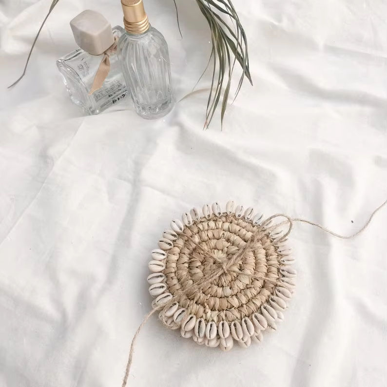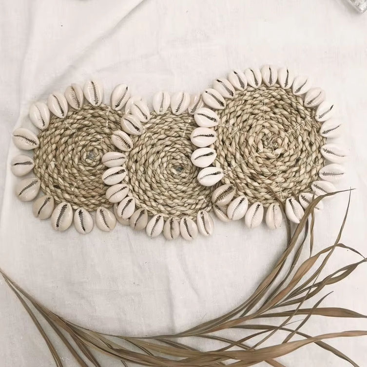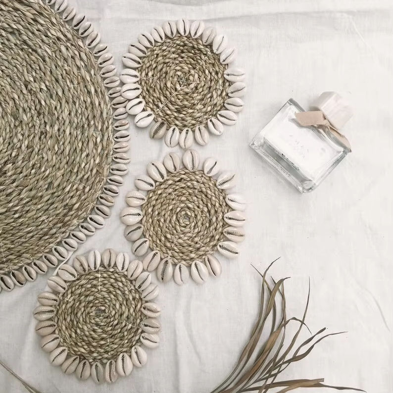 Vintage Coastal Style Cup Mats Pads Handmade Seagrass Straw Coasters With Seashell Retro Coasters Best Table Home Decor