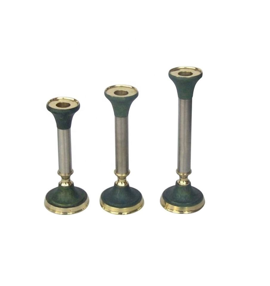Set of Three Green Grey Metal Candle Holders for Home Christmas Decor Elegant Pillar Shape Available Manufacturer Wholesaler