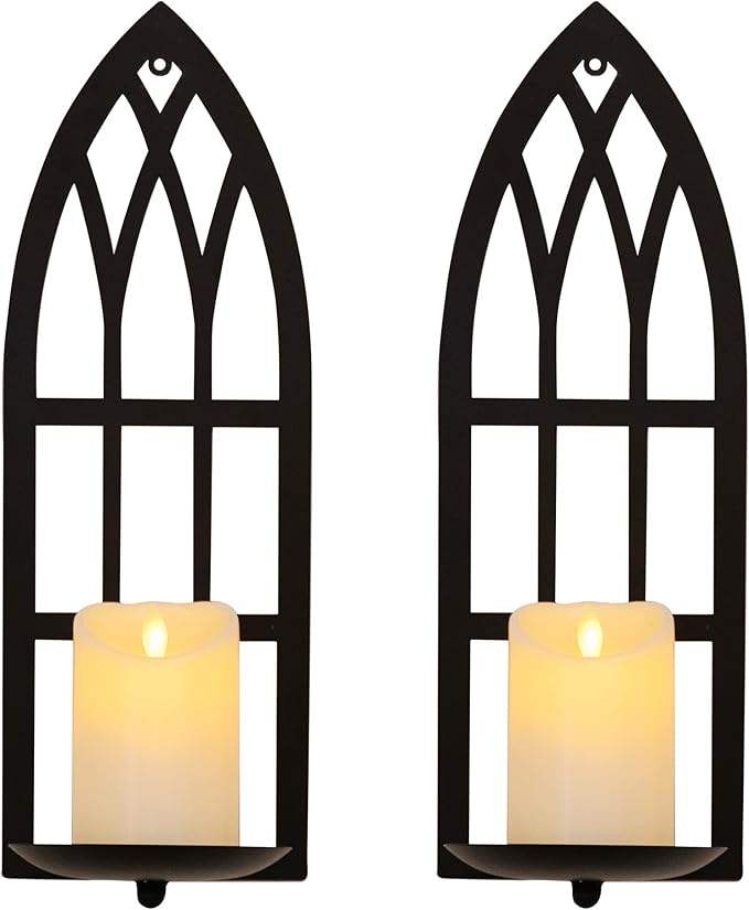 Set of Two Black Metal Candle Wall Sconces Home Decoration Christmas Candle Holders