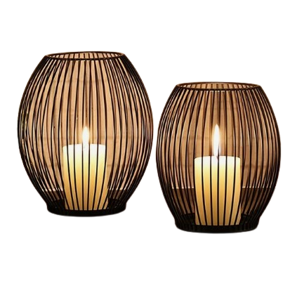 Set of Two Luxury Hotels Tabletop Decorative Wired Candle Lanterns Hotels Room Powder Coated Wired Candle Holder Searchlights