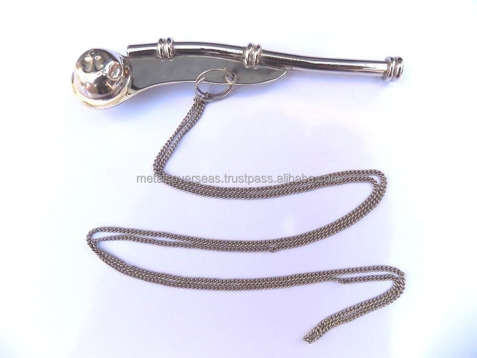 Set of Two Vintage Traditional Maritime Bosun Call Pipe Whistles Brass Boatswain Whistles Chains for Nautical Use Customizable