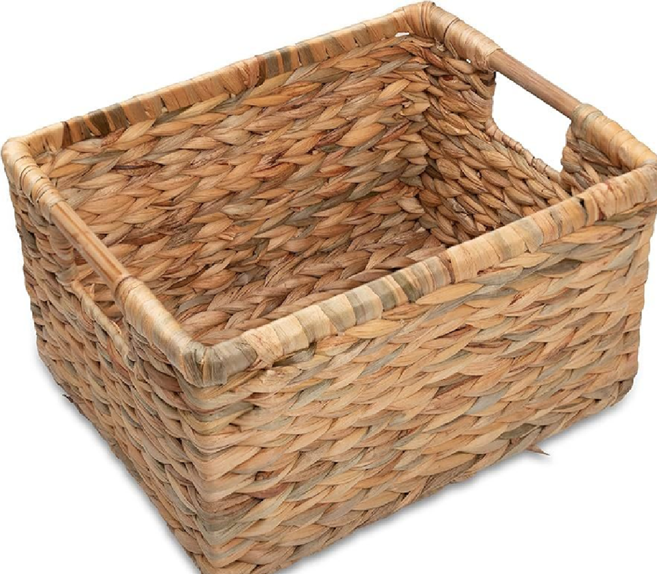 Set of natural woven water hyacinth baskets, rectangular storage bins, versatile home organization, at wholesale prices.