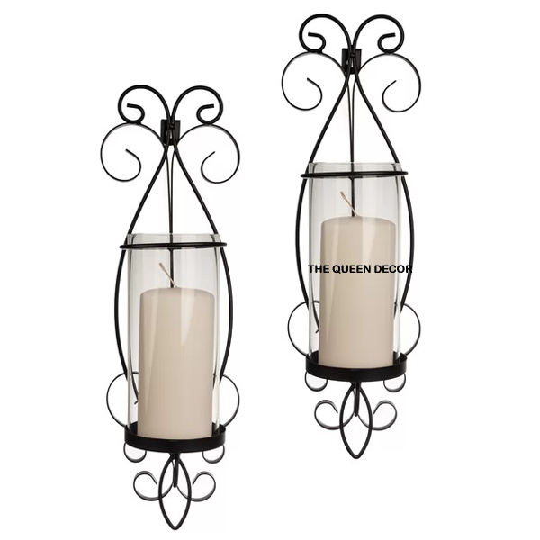 Sets Of 2 Iron Metal Unique Shape and Clear Glass Black Finish Home Decorative Wall Scones Home Garden Lighting Accent