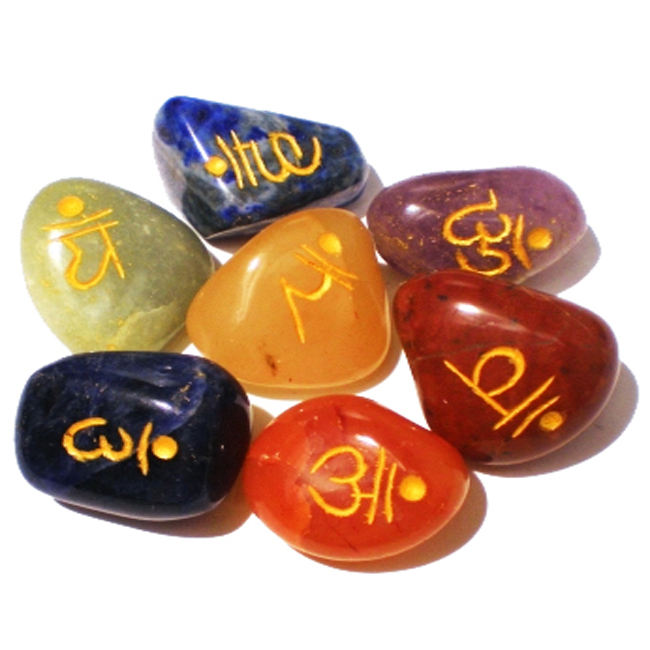 Seven Chakra Engraved Sanskrit Tumble Stone Set Symbolizing Body Engraved Chakras Reiki with Velvet Pouch Buy Handmade Products