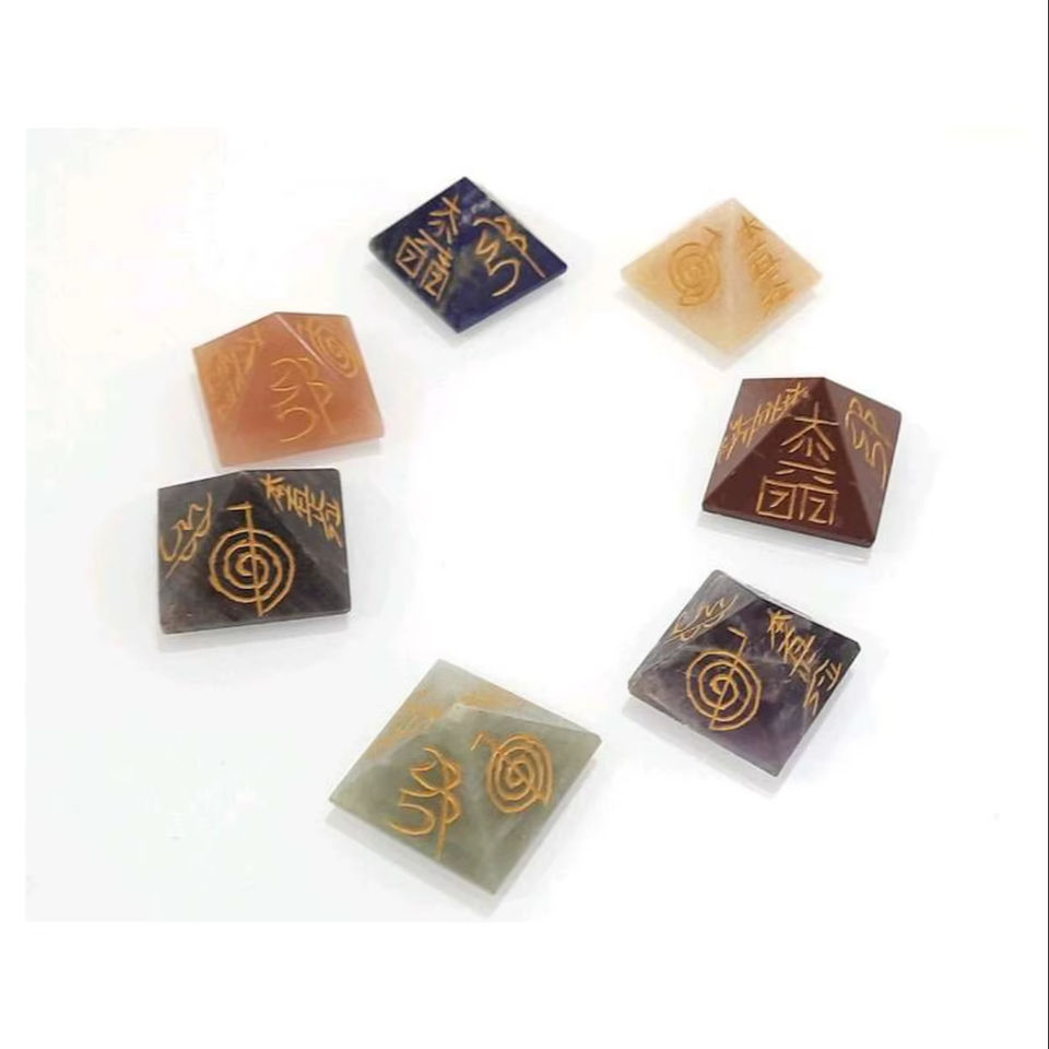 Seven Chakra Orgone Pyramid Copper Reiki Symbol Crystal Point Chakra Balance Orgone Products Wands Reiki Sets