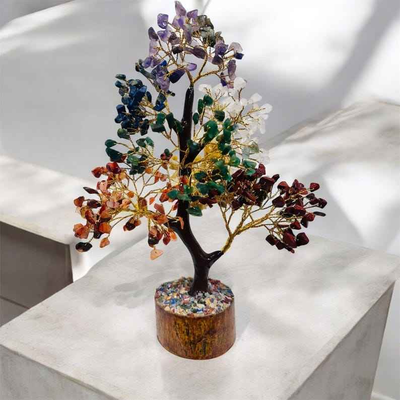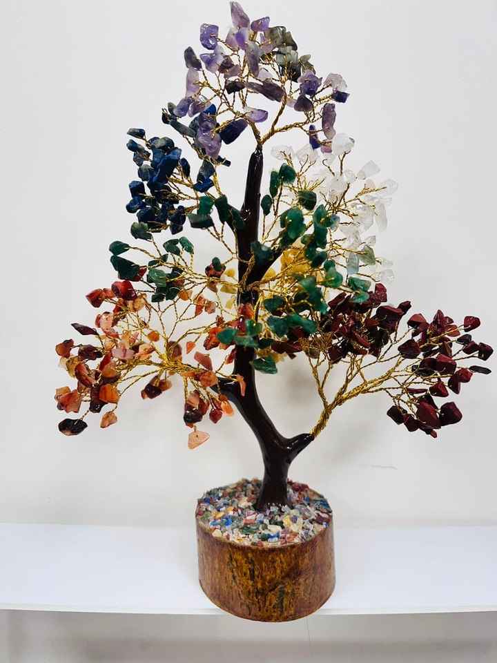Seven Chakra Tree Unique Patterned Agate Stone Crafts Designed With Semi Precious Crystals Add Energy Balance Artistic Beauty