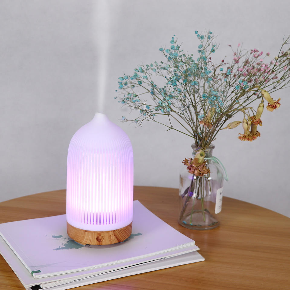 Seven Color Aroma Diffuser Ultrasonic Mini Desktop Humidifier Wood Grain Led Light Home Bedroom Use 0.5L Capacity