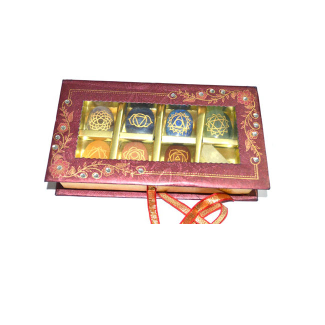 Seven Rough Reiki Crystal Chakra Engraved Oval Set With Gift Box natural Loved theme Mascot Style