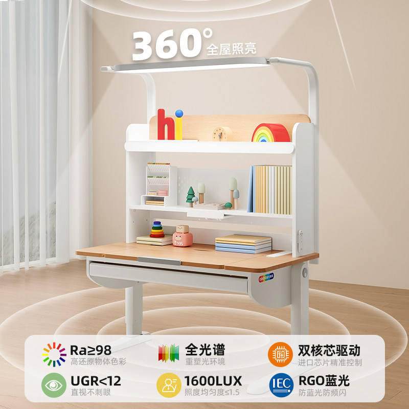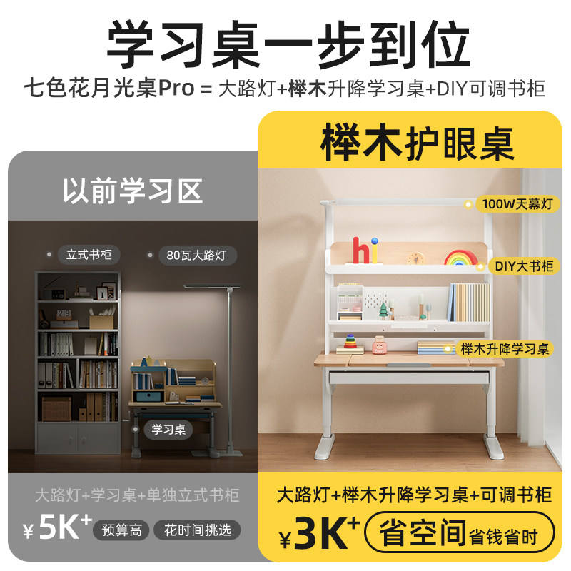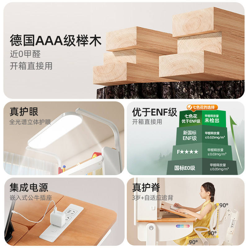 Seven-color Flower Moonlight Table Pro Children's Height-adjustable Study Desk Student Solid Wood Beech Eye-protecting Large