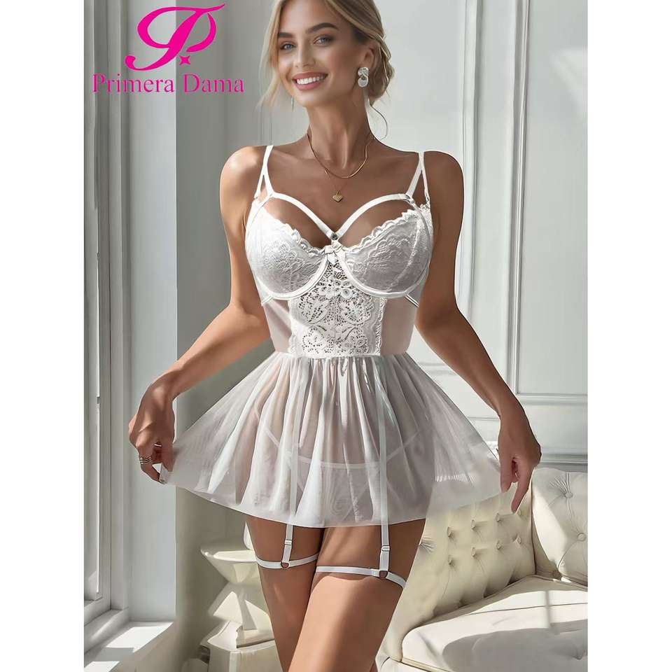 Sexy Babydoll Lenceria Mesh with Strap Sensual Camizón Lace Laces Included Packaged Surtido Three Colors for Women's Underwear