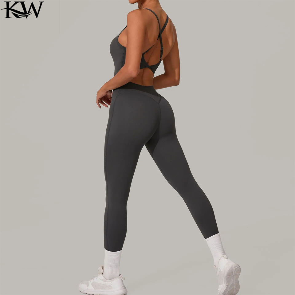 Sexy Backless Sling Women Full Seasons Casual Fitness Sporty Playsuit Sleeveless Slim Activewear All In One Jumpsuit Clothing
