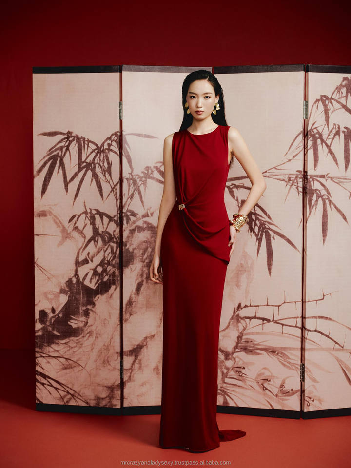Sexy Burgundy Bodycon Maxi Dress Elegant Red Power Dress OEM ODM Ready To Ship