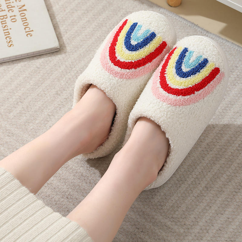 Sexy Colorful rainbow slippers Home Platform Plush Cotton slippers Minimalist Fluffy Lined House Slipper
