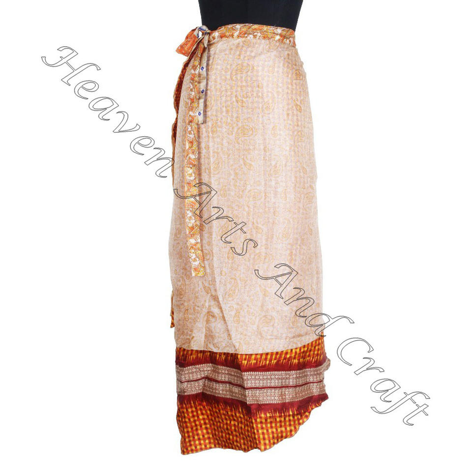 Sexy Girls Long Wrap Skirt 2 Layer Reversible Magic Silk Saris Wrap Long Skirt Indian Bohemian Multi Dress Magic Double Layer