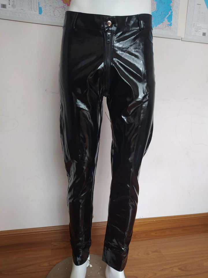 Sexy Men's Faux Leather Wetlook Tight Pants Leggings Clubwear Zip Trousers 2021 Autumn New Baggy Fashion Oversize Sports Pants