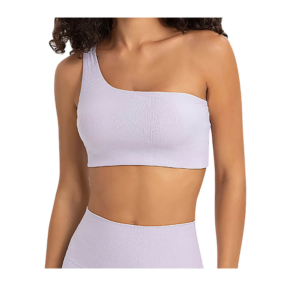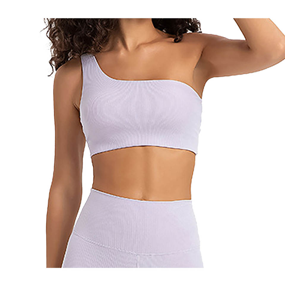 Sexy One Shoulder Crop Sports Bra Female Gym Active Crop Top Beauty Back Fitness Underwear Seam White Push up Yoga Bras
