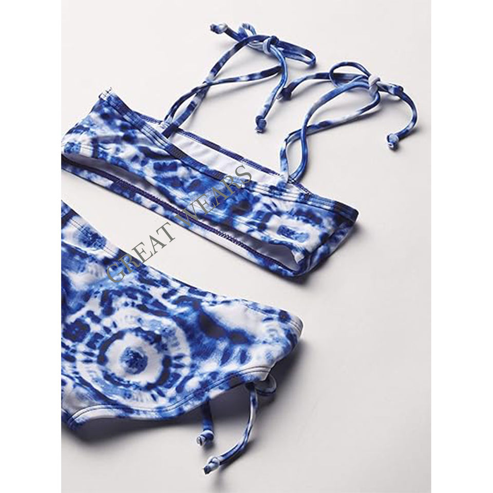 Floral Gingham Print Women's Bikini Set Sexy Push-up Silk Summer Beachwear Swimwear with Beach Dress Cover Up 2-Piece Swimsuit
