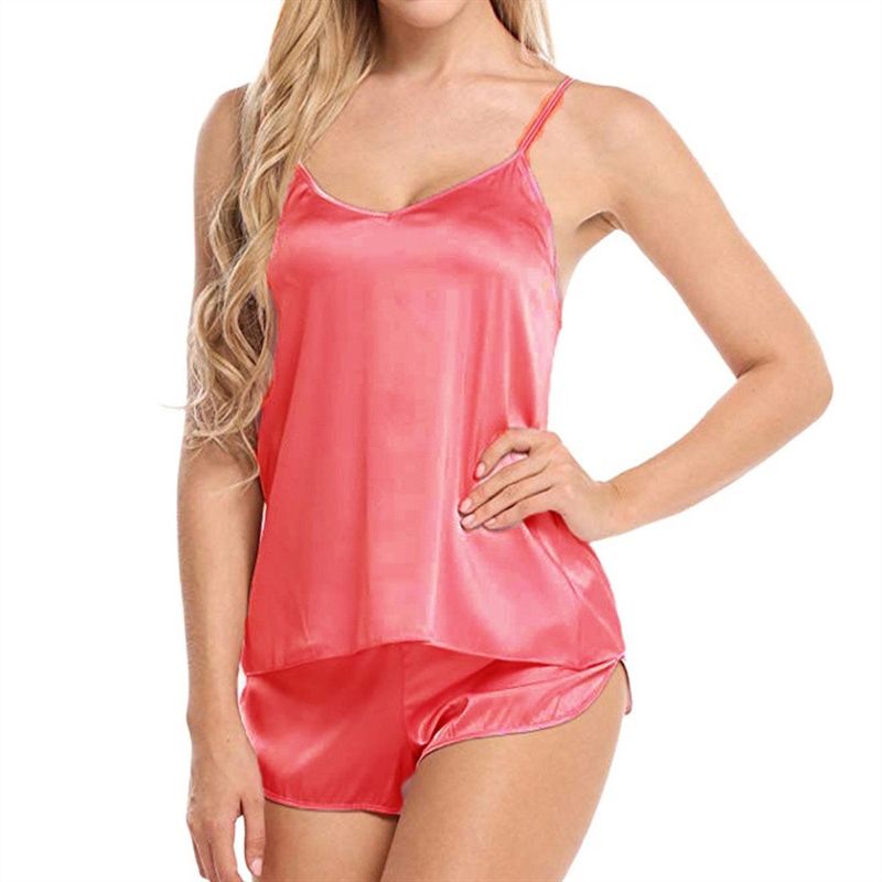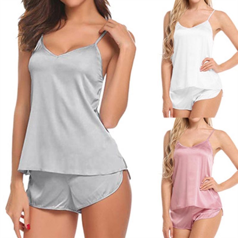 Sexy Satin Silk Pajamas Sets Plus Size 3XL See Through Camisole Sleeveless Tops And Shorts Women's Home Clothes Sleepwear