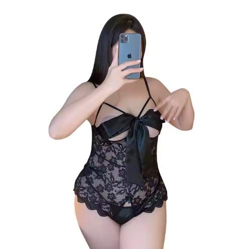 Sexy Style Plus Size See-through Lingerie Erotic Tempting Bodysuit Transparent Bowknot Crotchless Nightwear