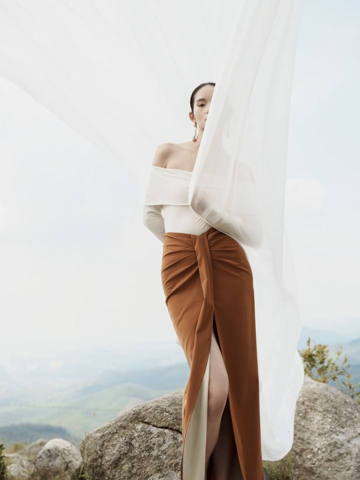 Sexy Sweet Pencil Skirt Pleated Structure Front Vegan Leather 45%Rame 55%Polyurethane Slit AUDREY PENCIL SKIRT Two Piece Set