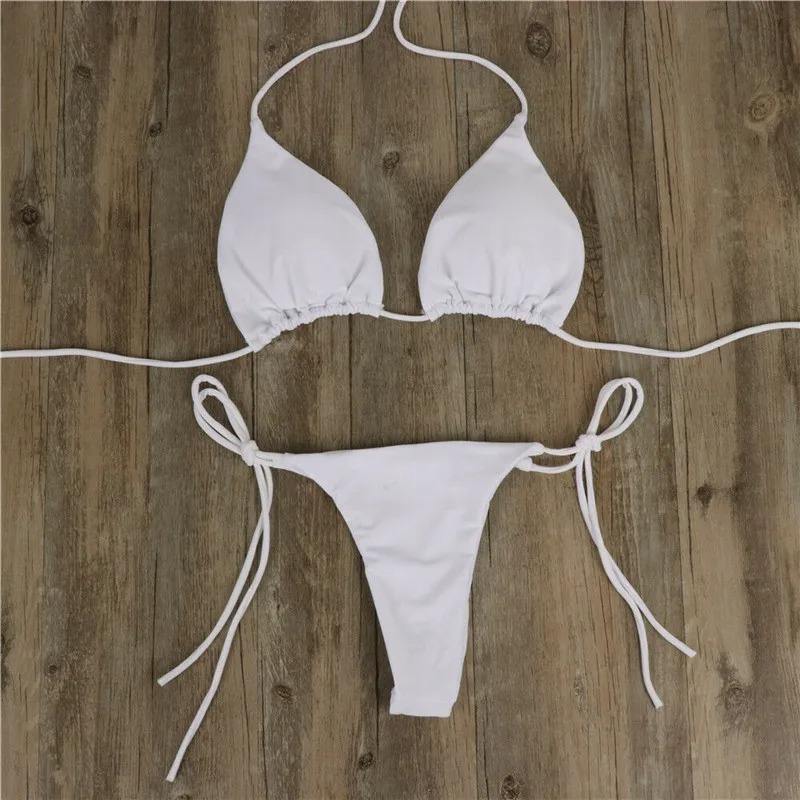 Sexy Woman Thong Solid Color Bikini Set Side Halter Tie Swimsuit Ladies Split Strap Adjustable Brazilian Swimwear Beachwear 2025
