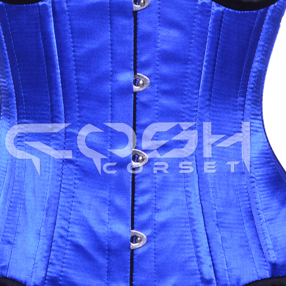 Sexy Women Blue Satin Underbust Steel Boned Curvy Corset With Black Satin Trim & Back Laced Up Corset Exporter From Pakistan