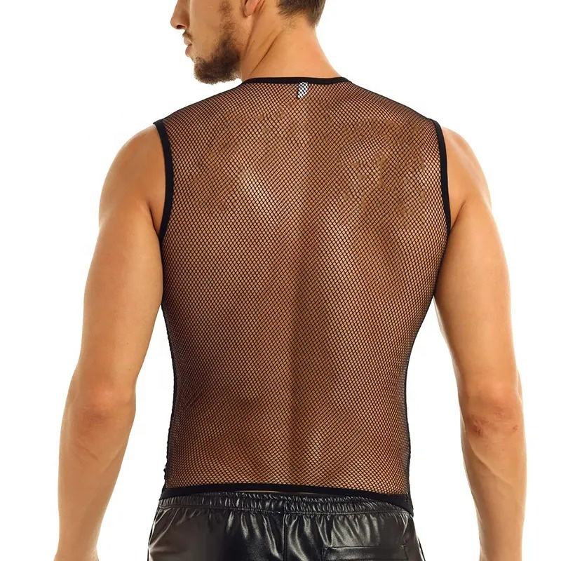 Sexy Vests for Men Gym tank Tops Men High Quality Mesh Patchwork tank Top Crop Fishnet Hollow Out High Quality Vest