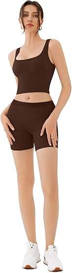 Sexy women brown yoga set seamless sports crop top with leggings slim fit breathable activewear