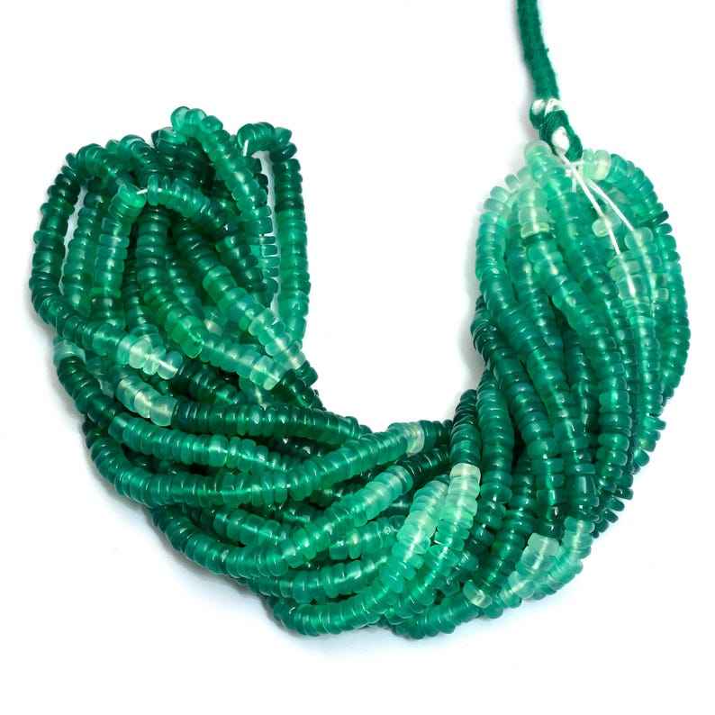 Shaded Natural Green Onyx Heishi Tyre Shape Gemstone Beads 4-5mm Loose Onyx Stone Beads For Jewelry Making From Wholesaler Price