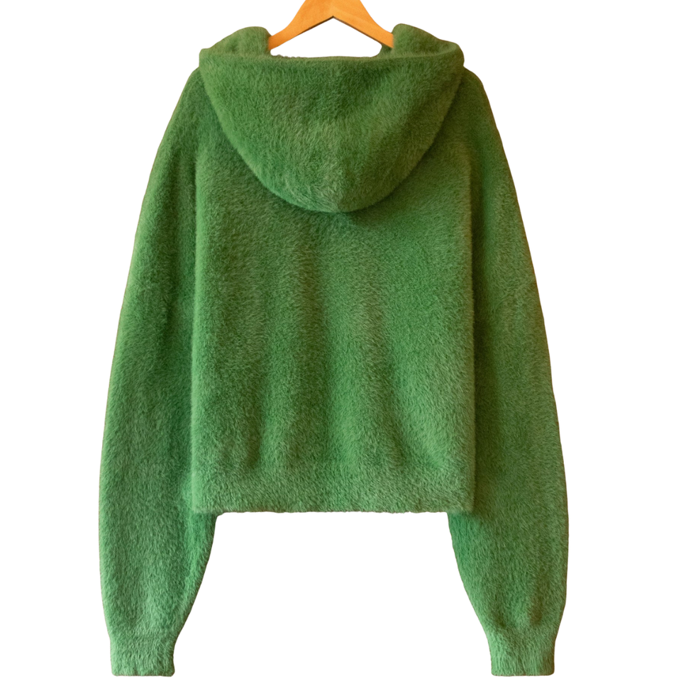 Shaggy Knitted Embroidered Explorers Hoodie Soft Textured Yarn Zip Front Design Premium Eco-Friendly Winter Wear Cozy Casual