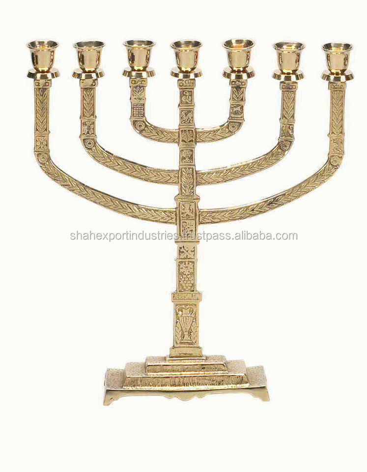 Shah Gold Plated Metal Jewish Hanukkah Menorah 9-Arm Star Design Customized Size for Home and Christmas Decor