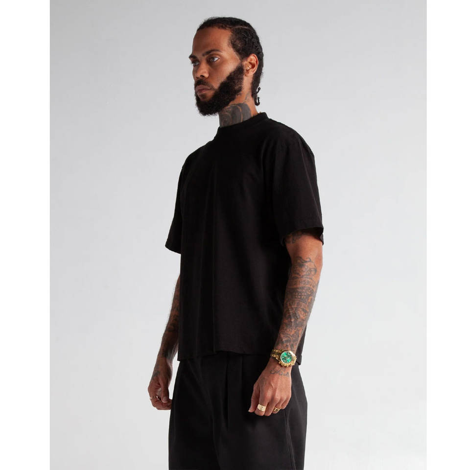 Shaka Wear Men Short Sleeve Off Black Plain Tee max-heavyweight-High Quality Men's Cropped Boxy T-shirt for men 100% Cotton