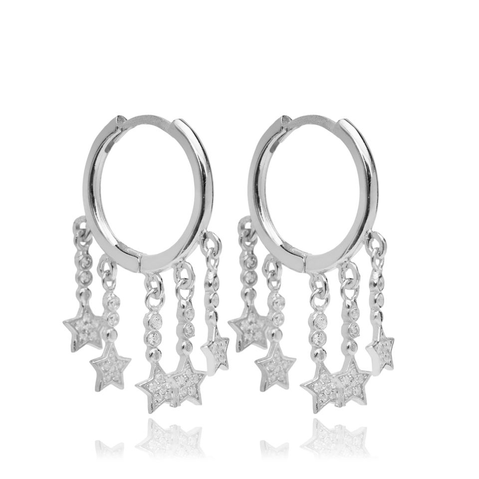 Shaker Star Charms White Zircon Stone Hoop Earrings Turkish Wholesale Handmade 925 Sterling Silver Jewelry