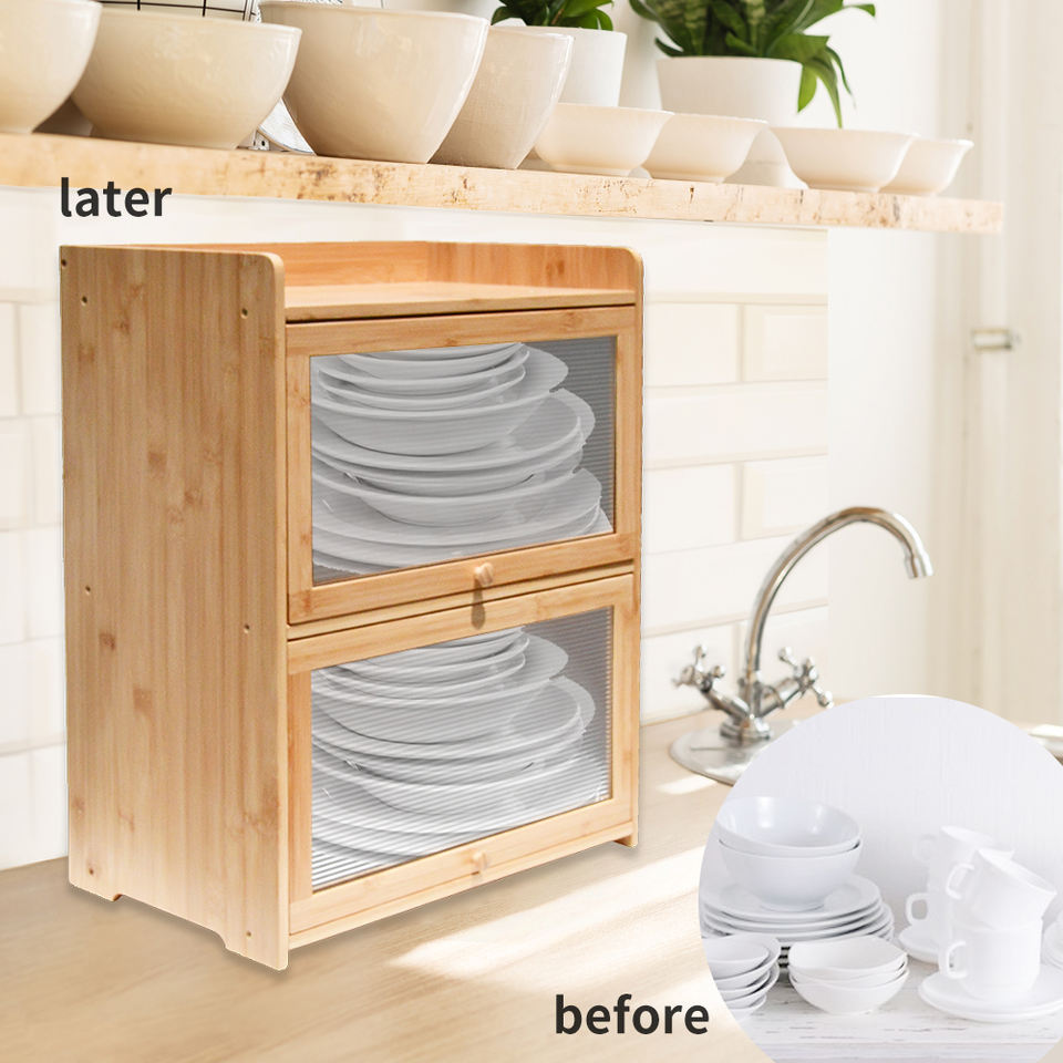 Name:Bamboo Kitchen Countertop Storage Cabinet with Windows