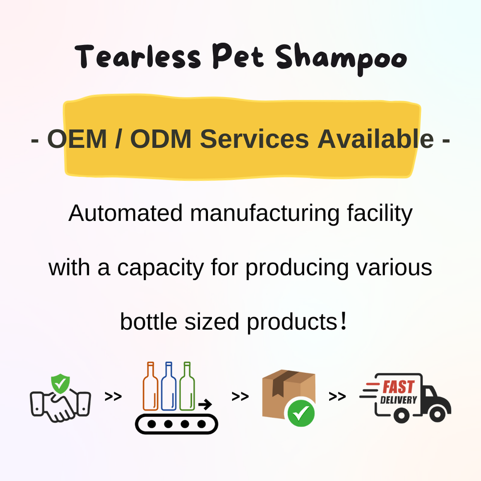 Tearless grooming of pet fur while eliminating odor, grease & dirt.
