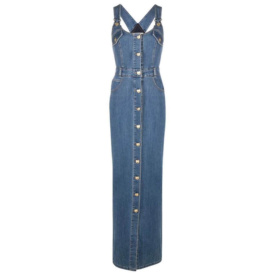 ShanLai Custom Lady Overall Denim Dress/OEM Halter Sleeveless Maxi Jean Dress for Women