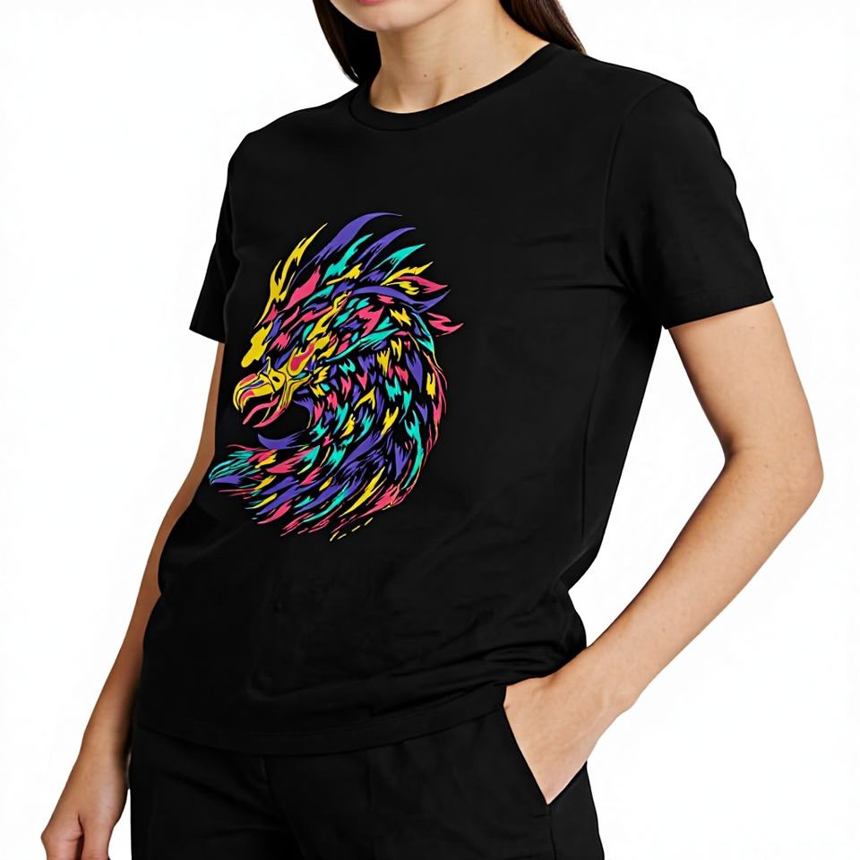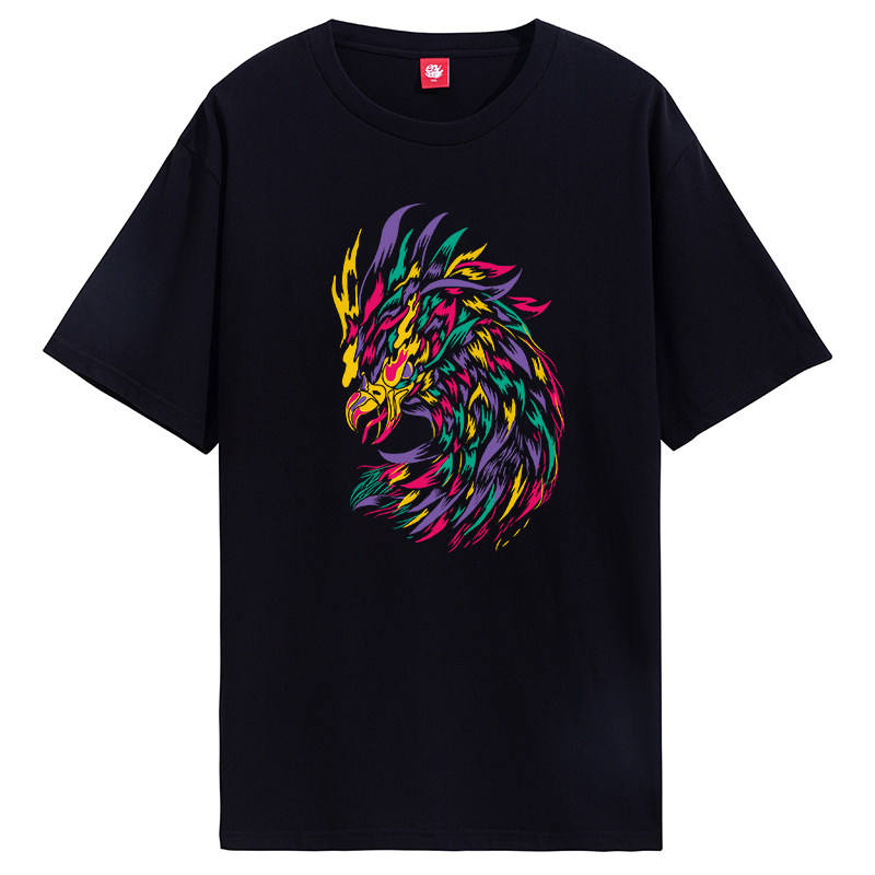 Shanghai T-shirt Phoenix for 350 National Heritage Straight Shoulder Casual Pure Cotton Animal Print O-Neck National Men's