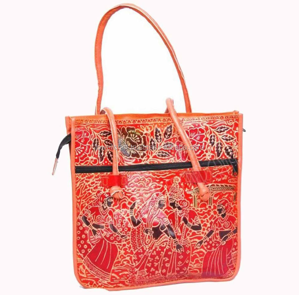 Shantiniketan Leather Shoulder Bag Traditional Printed Handbag for Women|14 Inch MulticolorShantiniketan Shoulder Bag