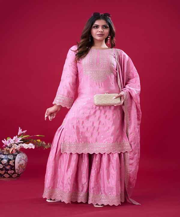 Sharara Casual Long baby pink 3 Piece Dupatta Clothing Modest Dress Long Stylish women wear top Sharara with dupatta