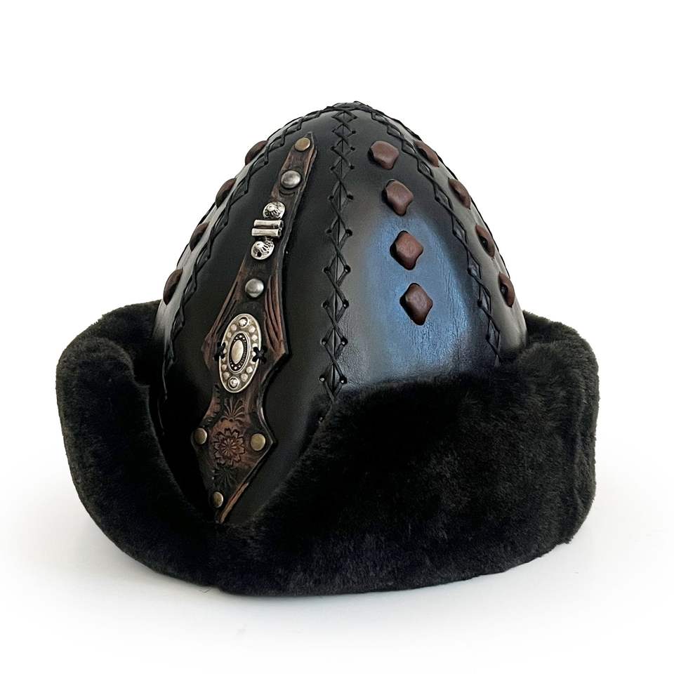 Shark Anatolia Ertugrul Gazi Embossed Pattern Metal Brooch Genuine Leather Bork Hat Black 57 cm / 22.4"