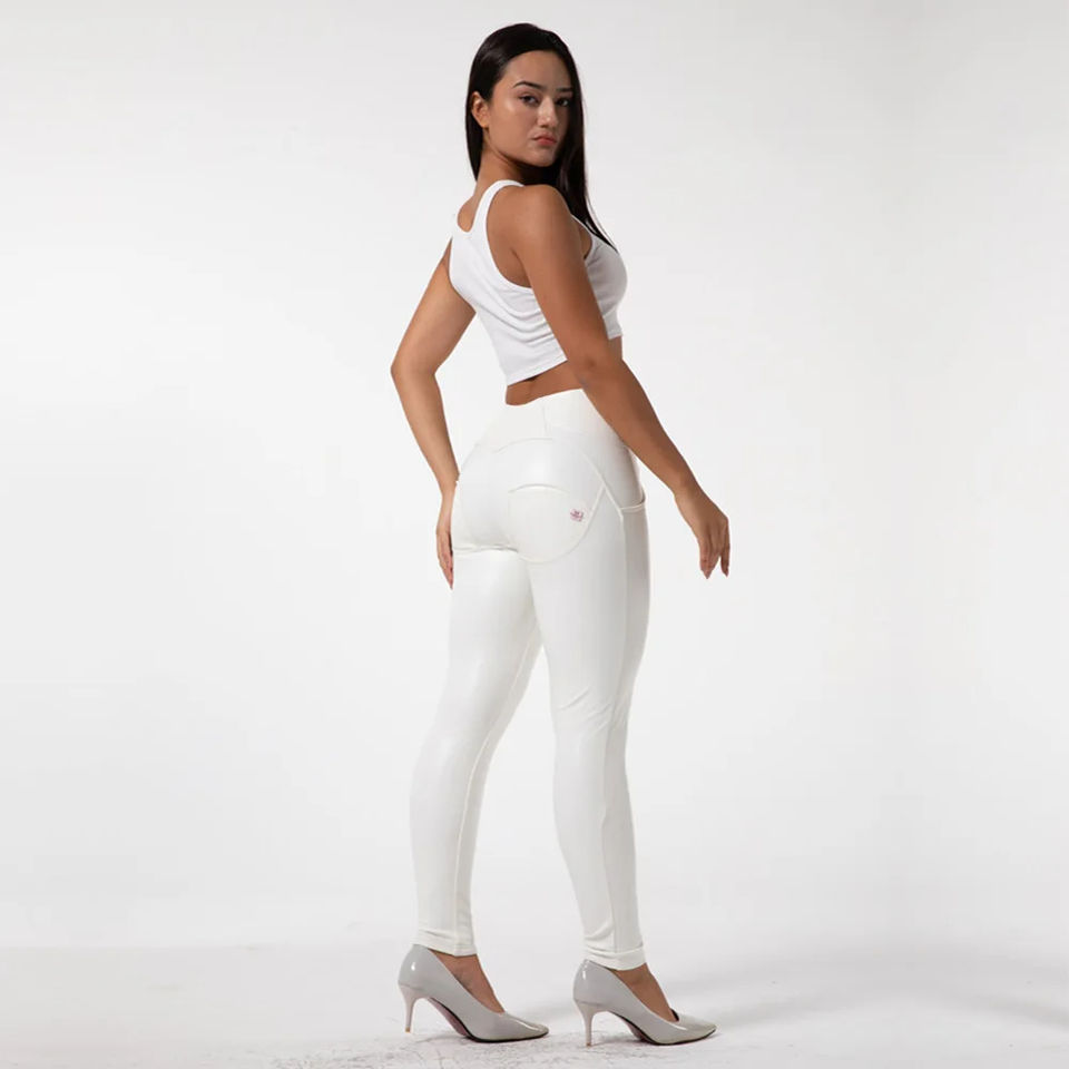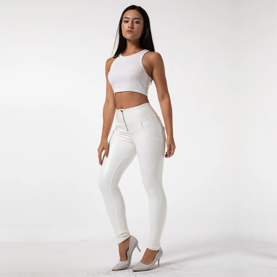 Shascullfite Melody High Waisted Leather Look Jeans Women's White Faux Leather Pants Skinny Fashion Leggings Booty Lift Leggings
