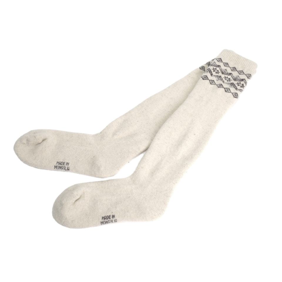 Sheep Wool Knee-high Socks 100% Natural Mongolian – Natural Pure with Snowflake for Adults White Design at Upper Edge