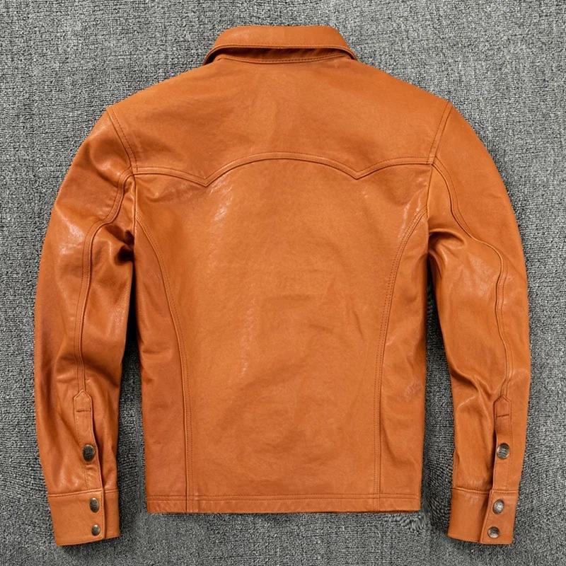Sheepskin Leather Jacket Men's Orange Plant Blend Slim Fit Short Shirt Leather Jacket jacket for men