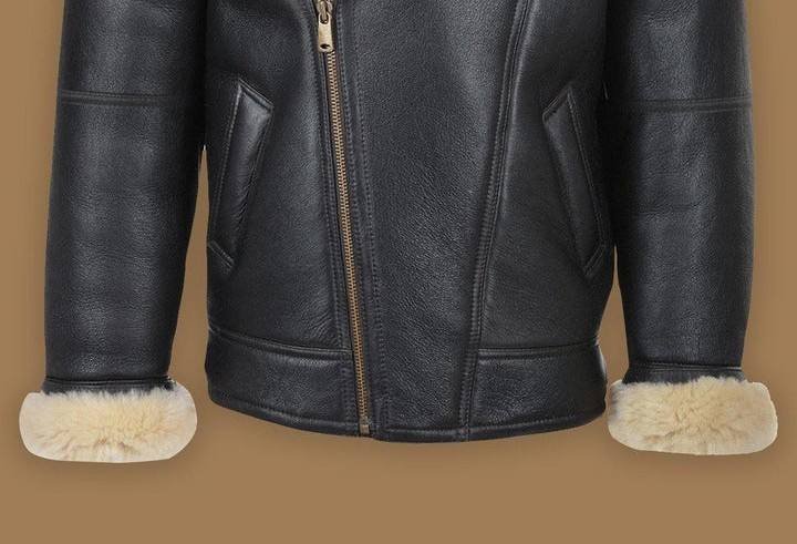 Sheepskin Shearling Leather Bomber Jacket Windproof Hooded Thin Lining Warm Comfort Men Fashion High Quality Outerwear Trendy