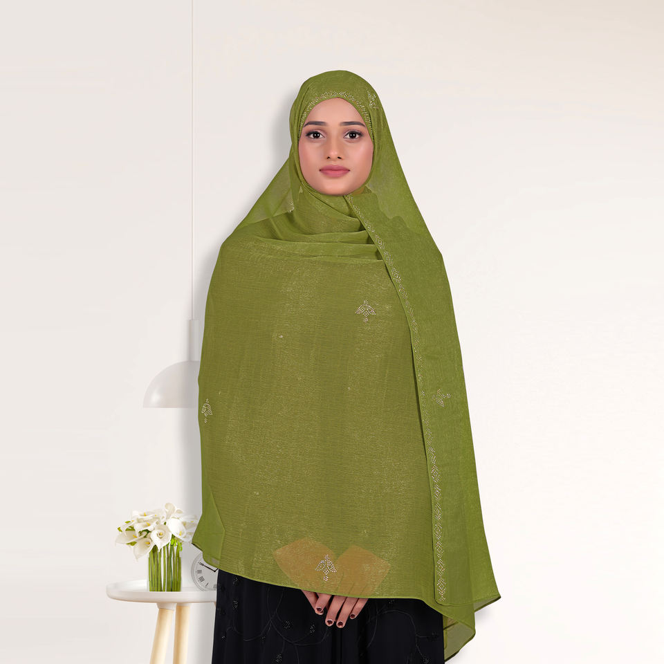Sheer Chiffon Islamic Headscarf Sparkling Crystal Accents Lightweight Windproof Elegant Modest Solid Veil for Prayer Daily Wear