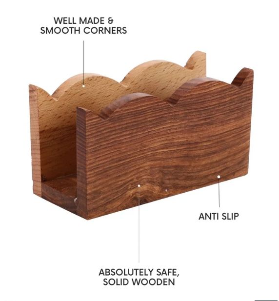 Sheesham & Beech Wood Tissue Holder Elegant Home Decor Design for Living Room Bathroom Antique Style table decoration