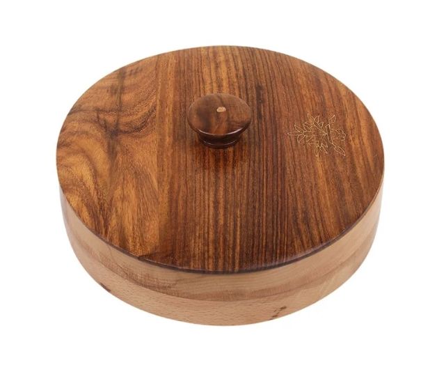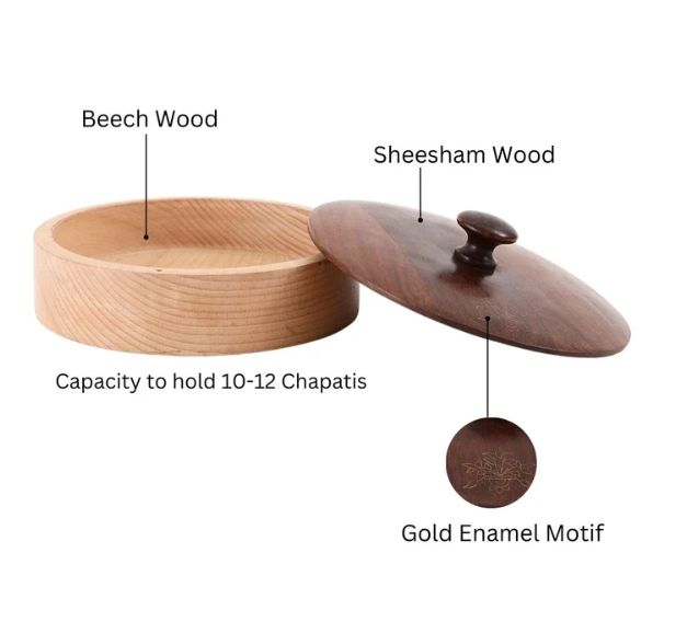 Sheesham Wood Enameled Casserole Chapati Box/Multipurpose Storage box Store Box Warmer Casserole Kitchen Decor Round Roti Dabba